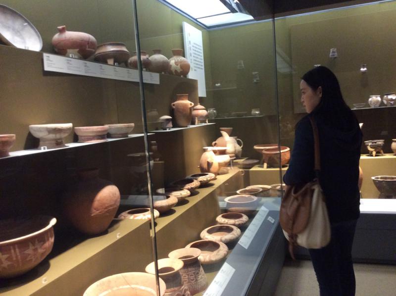 圖:觀眾欣賞新石器彩陶 大公報記者陳旻攝