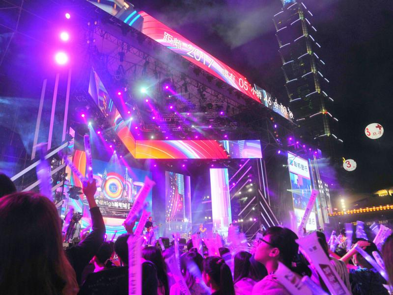 圖:台北跨年晚會在台北市政府前廣場舉行,樂團與歌手演唱,嗨翻全場/中央社