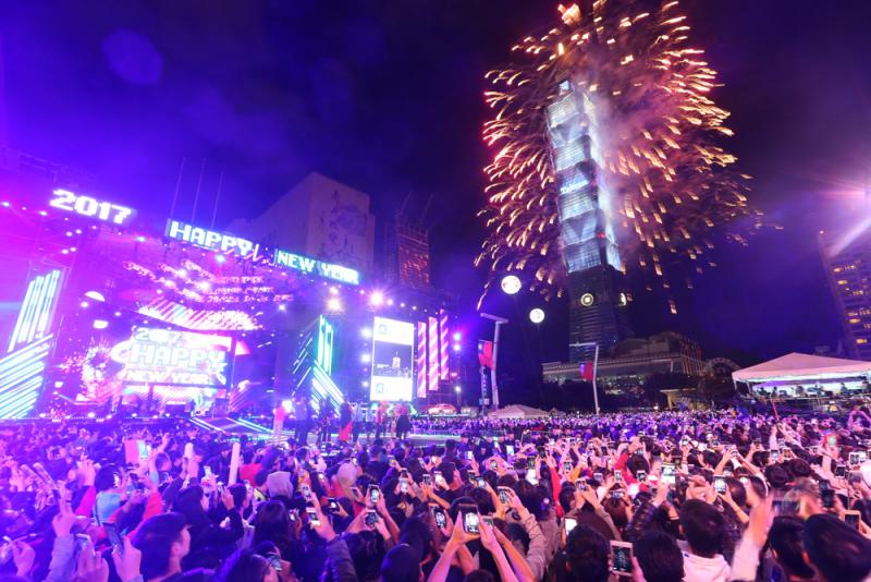圖:2017年1月1日凌晨零時,台北101大樓施放煙火燈光秀迎新年 /中央社