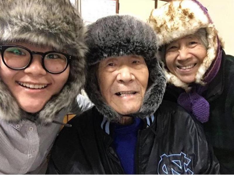圖:台灣女孩夏德萱(左)在社交媒體上貼出和爺爺(中)奶奶的合照 /網絡圖片