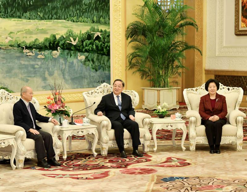 圖:中共中央政治局常委、全國政協主席俞正聲9日在北京會見出席第四屆台胞社團論壇的部分代表/新華社