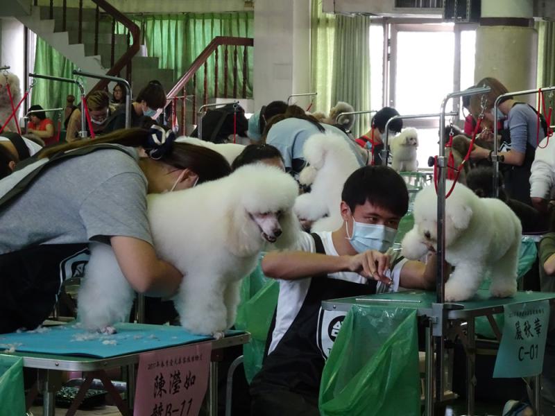屏東大仁科技大學暨台灣省育犬協會十日舉辦寵物美容檢定考試,八十七名檢定學員中有五十一名是陸生。 中央社