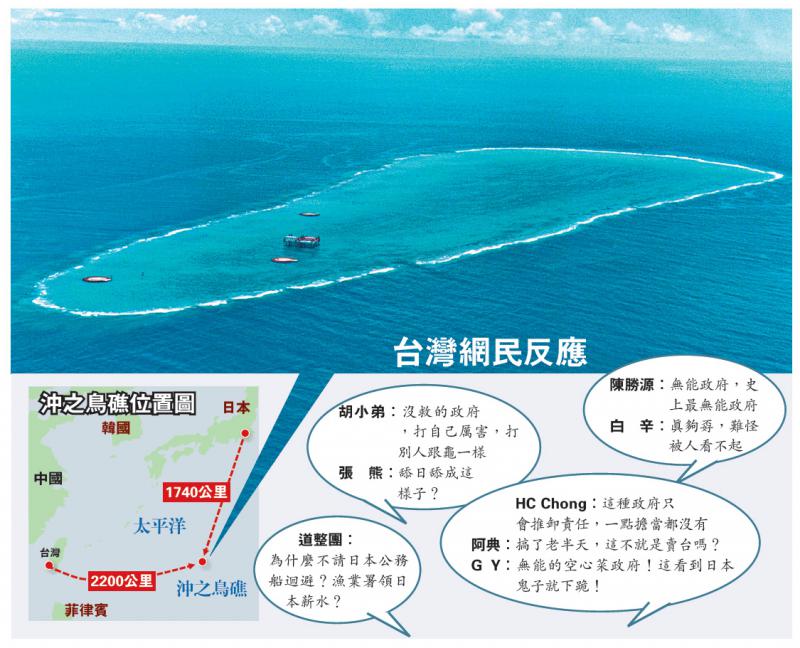 【大公報訊】近日台灣有5艘漁船在沖之鳥礁海域附近作業時,接到漁業廣播電台轉告台漁業署通知,日本將派公務船於沖之鳥海域巡護,要求台方漁船先行避開。事件曝光後,引發外界炮轟,國民黨批評蔡英文當局「逢日必軟」,公然讓日方欺凌台灣漁民,破壞漁民生計。更有漁民更感嘆「心都快碎了」。