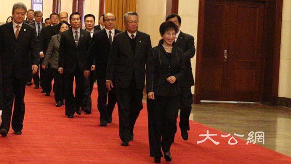 「習洪會」時,時任國民黨首席副主席的詹啟賢(洪之後)緊隨黨主席洪秀柱第二個進場。 李柏濤攝