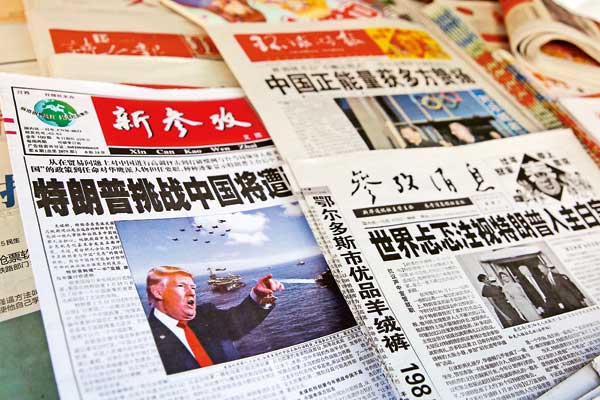 圖:上海一處報攤擺放以特朗普上任作頭條的報章/路透社