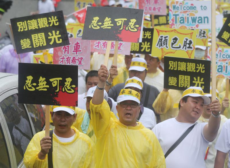 圖:民進黨當局去年五月上台後,陸客大減,影響島內旅遊業生計。去年九月台灣觀光產業上街抗議當局無法處理兩岸關係 資料圖片