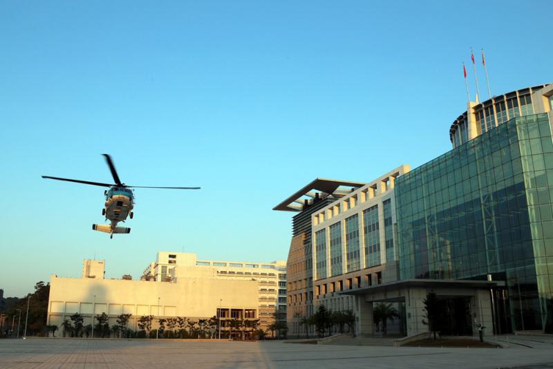 【大公報訊】據中通社報道:17日早上,台灣軍方派遣各1架次的空軍海鷗直升機及陸軍黑鷹直升機,在台北大直「國防部」博愛營區執行試降任務,引起關注。有台媒報道,這次軍方直升機首降博愛營區,是為了反制大陸可能對台進行斬首戰,模擬撤離台灣地區領導人作準備。不過,台「國防部」對此並未證實,僅表示這是「國防部」2014年遷到台北市大直之後,首度有直升機在「國防部」營區起降。