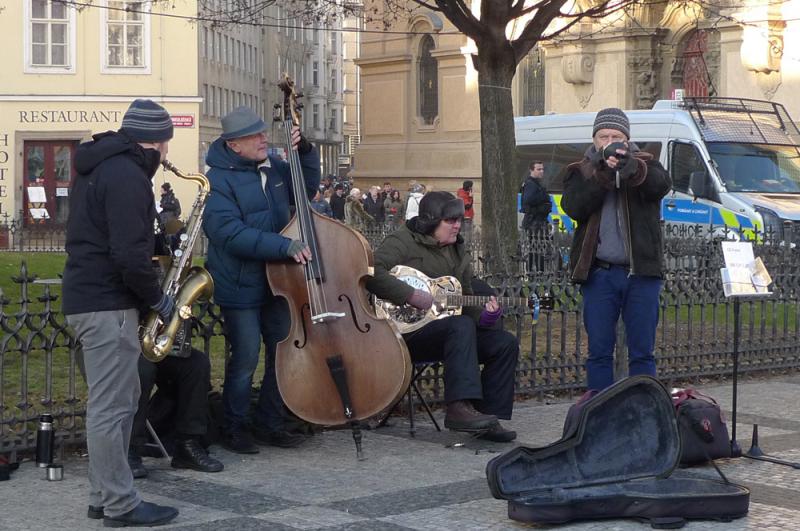 圖:玩音樂無年齡界限,中年以至長者音樂師於街頭演奏,在捷克隨處可見