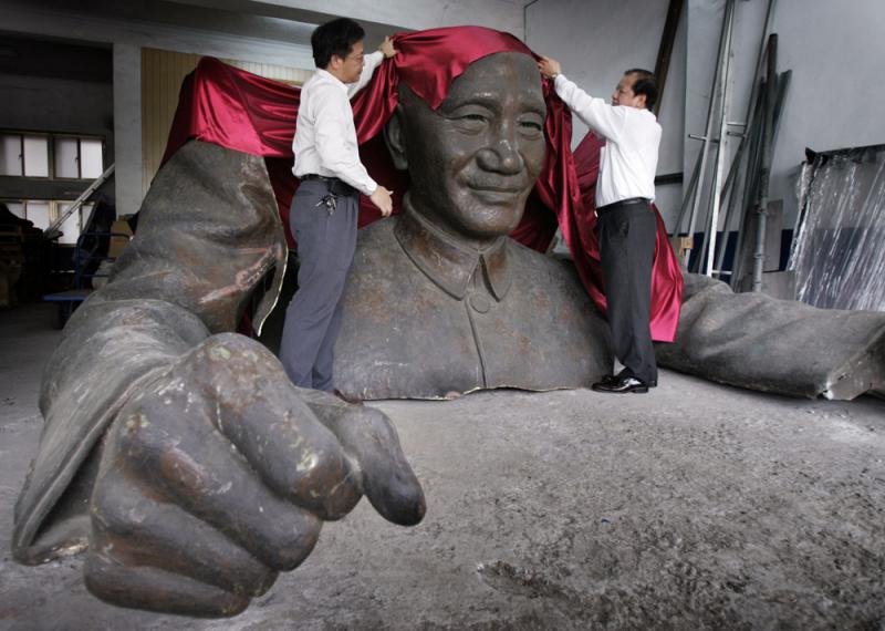 圖:島內各地近年被拆走的蔣介石銅像堆放在桃園的倉庫 資料圖片