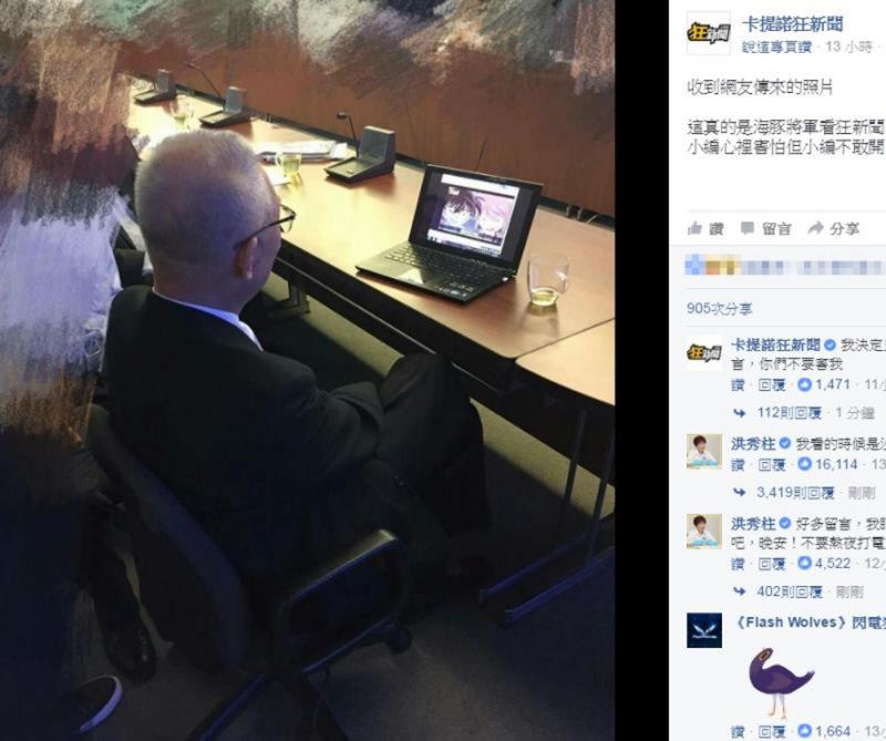以諷刺、詼諧方式嘲諷時事的「卡提諾狂新聞」Facebook粉絲專頁24日晚上傳台灣當局前副領導人吳敦義看「狂新聞」照片,引發網友熱烈討論,截至目前有3.8萬人按讚。中國國民黨主席洪秀柱也留言「我看的時候是沒人可以拍到的」,接着連副主席郝龍斌都上網留言說「下次也來用電腦看」。