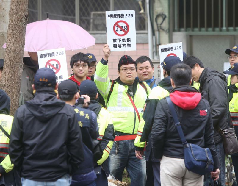 台當局領導人蔡英文2月28日上午首度以台灣地區領導人身份到「林宅血案」發生地、義光教會參加「二二八暨林家嬤孫追思禮拜」。場外,有民眾高舉抗議標語,高喊「拒絕消費二二八」、「放下仇恨、和解共生」、「蔡英文下台」。