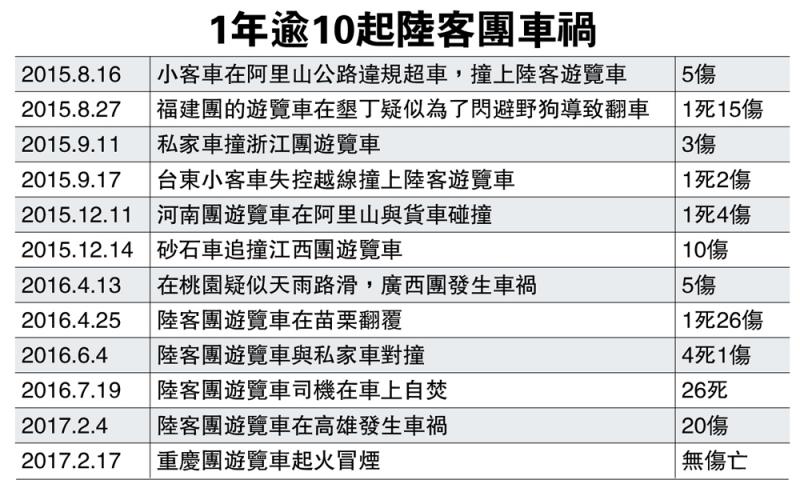 1年逾10起陸客團車禍