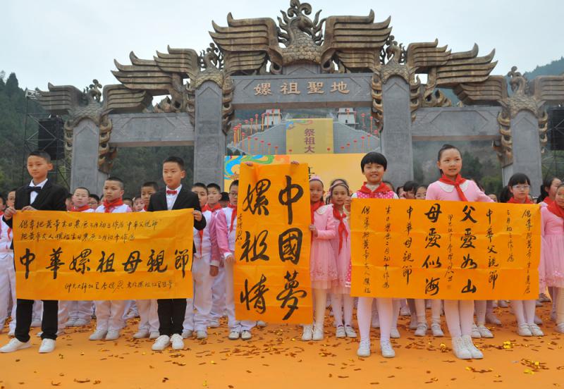 華夏母親嫘祖故里祭祖大典七日在四川省鹽亭嫘祖陵祭祀廣場舉行,來自海峽兩岸的近萬名嘉賓參加。 大公報記者向芸攝