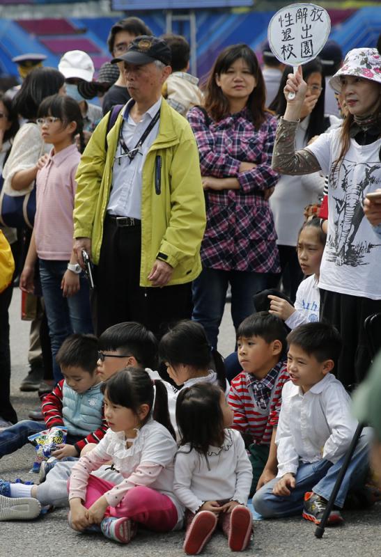 集會在台灣當局領導人辦公室前的凱達格蘭大道進行,不少家長帶着孩子參加。有參與者手舉「拒絕『同志教育』」「禁止不當性開放教材」等標語。