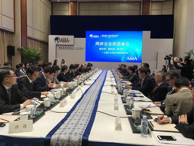 圖:兩岸企業家出席博鰲亞洲論壇2017年年會兩岸企業家圓桌會。由大陸海協會會長陳德銘與島內兩岸共同市場基金會最高顧問錢復共同主持 黃寶儀攝
