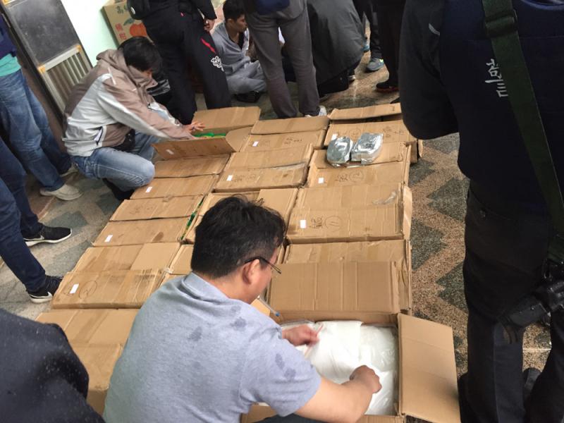 圖:警方清點查獲的氯胺酮\中央社