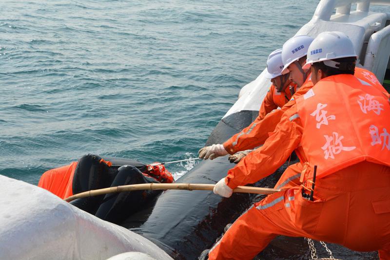 圖:福州可門正東海域撞船事故的救助人員拉起救生筏\受訪者供圖