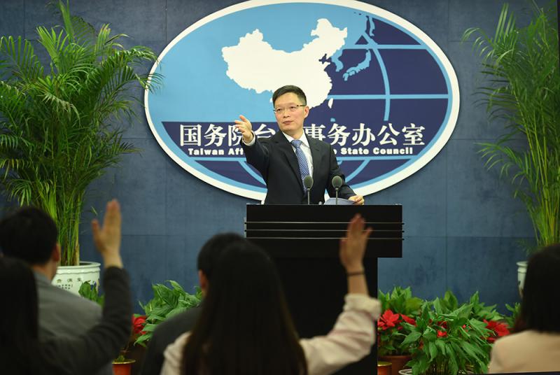 圖:國台辦發言人安峰山12日在北京舉行例行記者會/中新社