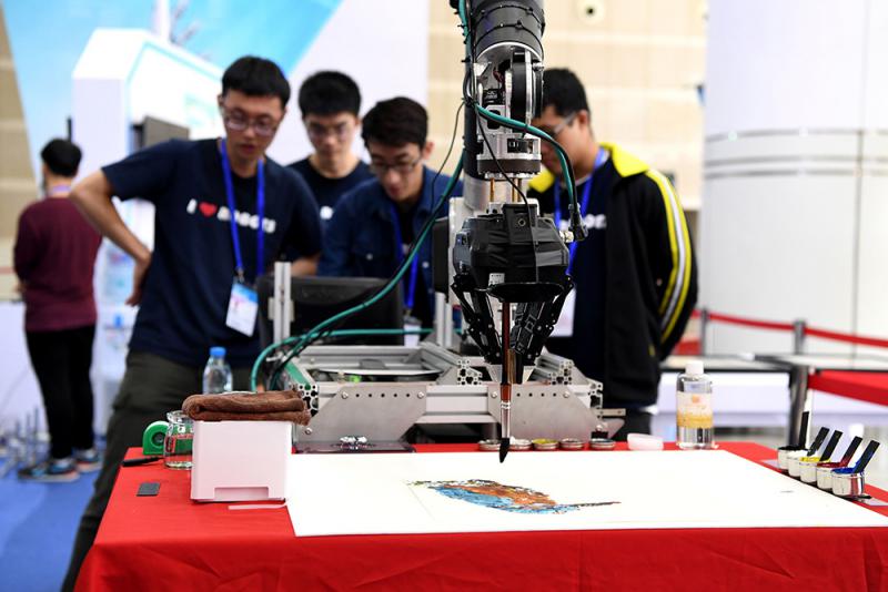 來自台灣的「繪畫機器人」十二日亮相廈門工業博覽會暨海峽兩岸機械電子商品交易會。/中新社