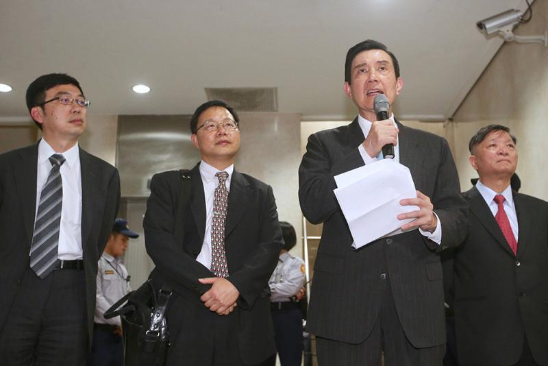 圖:馬英九(右二)被控教唆泄密等案在台北地方法院14日下午開庭 中央社