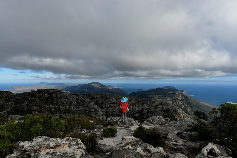 登上山頂,開普敦市、桌灣、維多利亞港、信號山、獅頭峰和曾經囚禁曼德拉的羅本島等,盡收眼簾,海天一色,氣象萬千。
