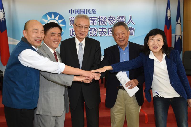 圖:韓國瑜、郝龍斌、吳敦義、詹啟賢與潘維剛(左起)/中央社