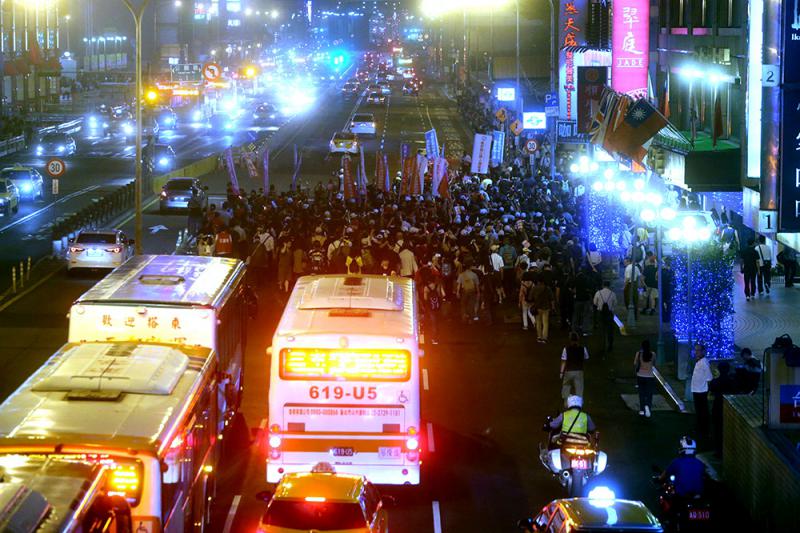 圖:監督年金改革行動聯盟18日夜晚在台北車站附近遊行/中央社