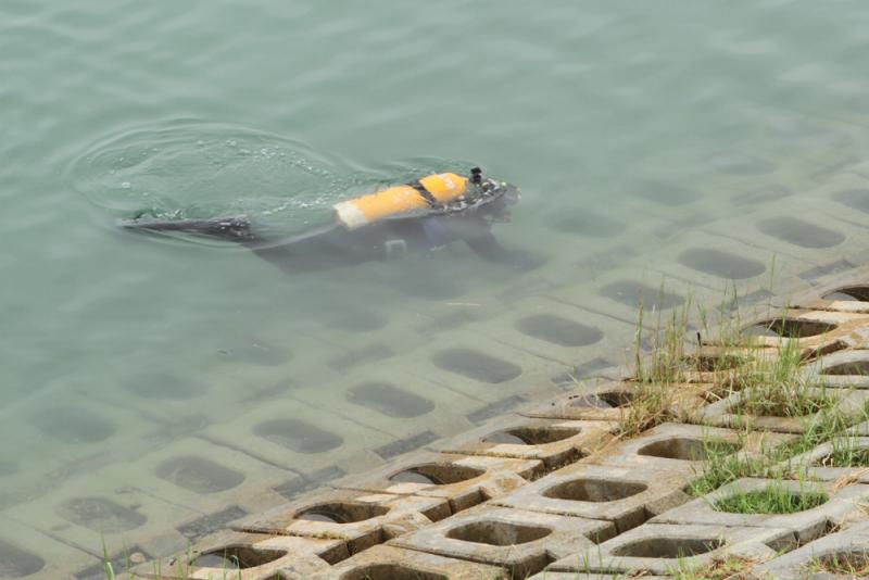 圖:嘉南農田水利會23日派潛水人員下水,搜尋日本技師八田與一塑像的頭部 中央社
