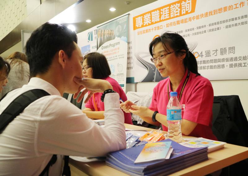 圖:2017大陸台商菁英招聘會29日在海基會大樓舉行,吸引許多兩岸學生參加 中央社