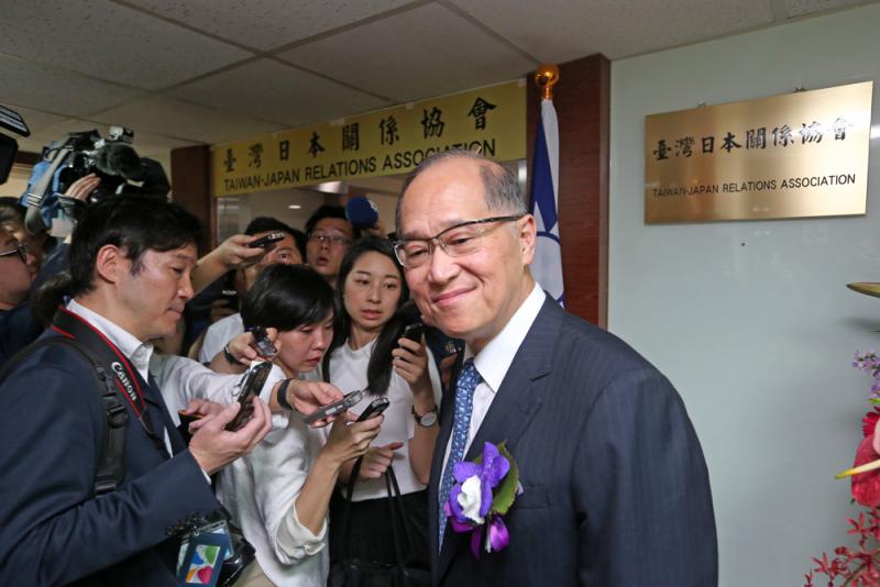 圖:台外事部門首長李大維(右)出席「台灣日本關係協會」揭牌儀式\中央社