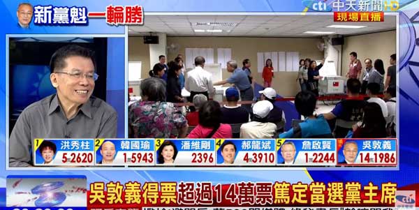 吳敦義得票逾14萬,台媒計票直播 (電視截圖)