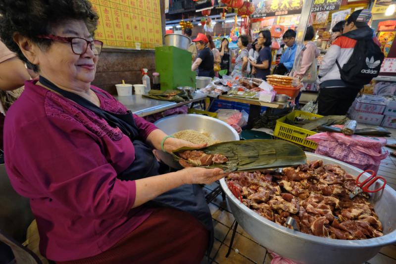 端午節將至,以南北貨著名的台北市南門市場湧入買糉子的民眾,商家們趕工包糉、煮糉、炊糉,滿足端午節需求。 中央社