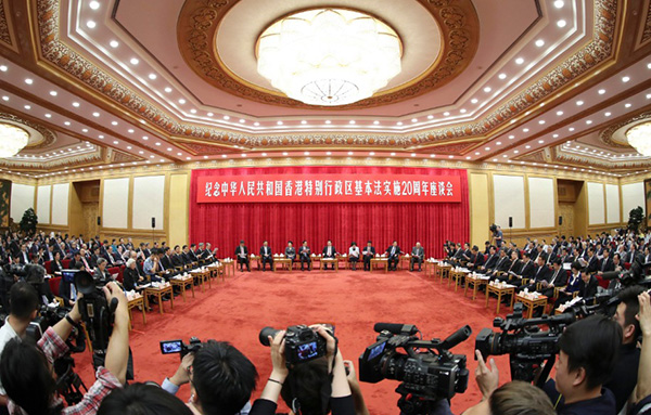 紀念中華人民共和國香港特別行政區基本法實施20周年座談會27日上午在北京人民大會堂隆重舉行。