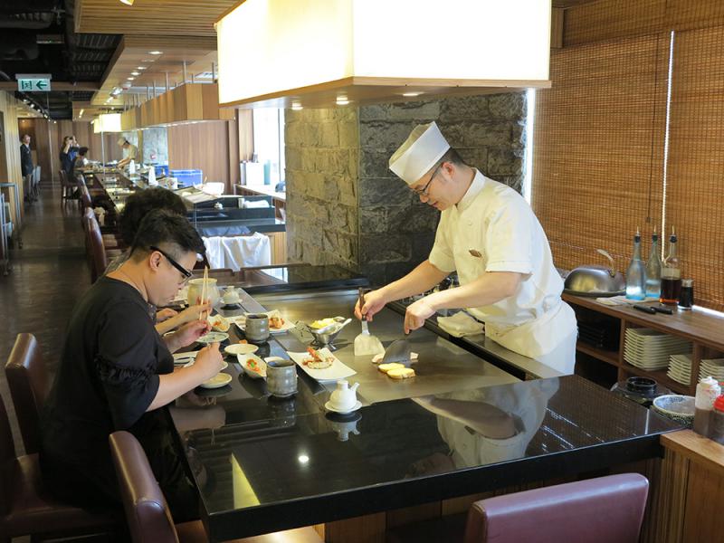 圖:Lam在製作鐵板燒食物的時候,也會和客人閒聊家常