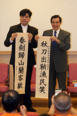 馬英九現場揮毫上下聯(台媒)