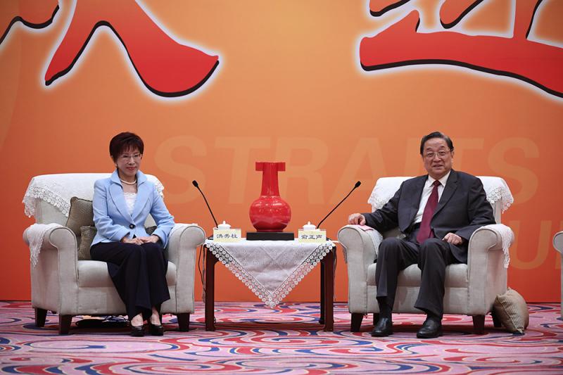 圖:17日,中共中央政治局常委、全國政協主席俞正聲(右)在廈門會見中國國民黨主席洪秀柱等前來參加第九屆海峽論壇的台灣各界重要嘉賓 大公報記者何德花攝