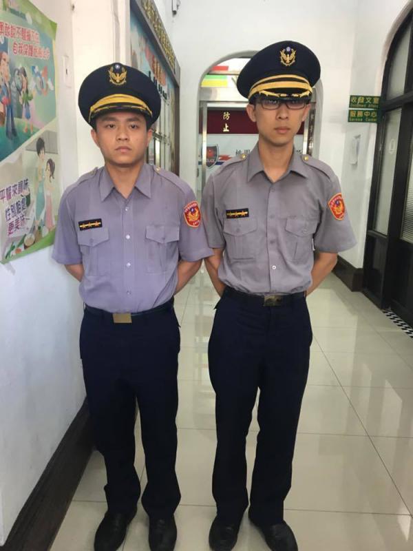 圖:桃園中壢派出所英勇追趕槍手的警員陳律君(左)、白泓翔(右) 網絡圖片