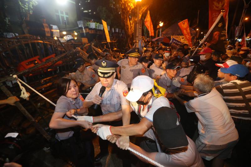 圖:台「立法院」二十六日續審年金改革相關法案。場外反年改群眾集結抗議,與警方爆發推擠衝突\中央社