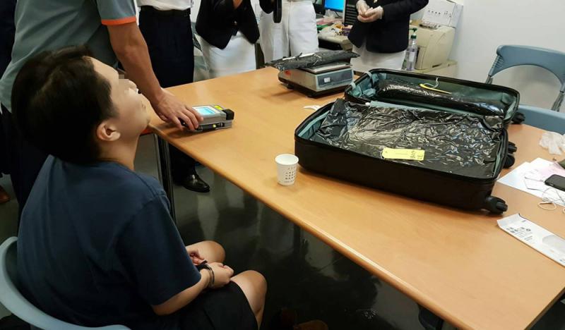 圖:一名香港女子(前)攜帶超過8公斤的可卡因闖關,在桃園機場被捕 中央社