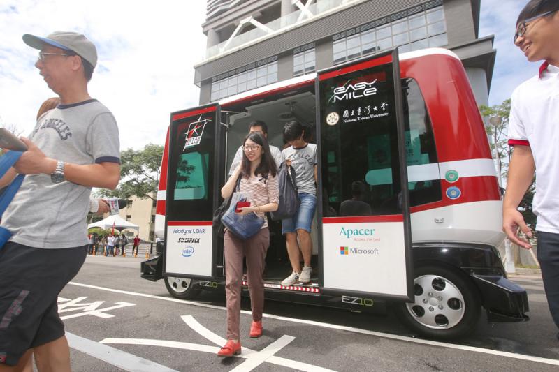 台灣大學跟喜門史塔雷克產學合作,引進首輛電動無人駕駛小巴EZ10。