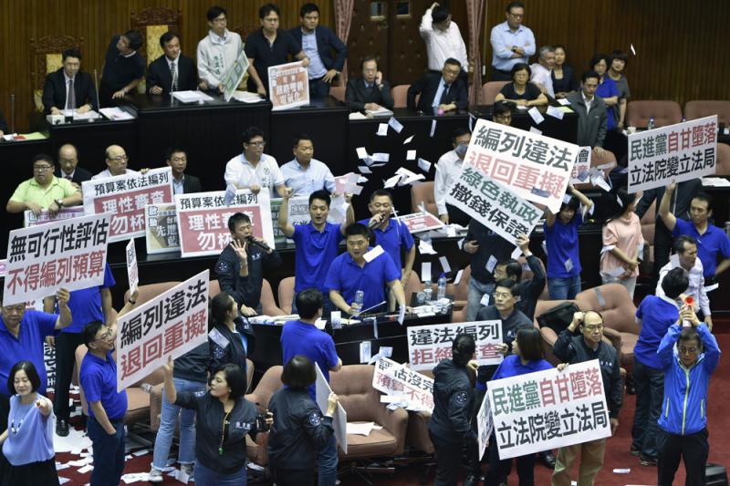 圖:台「立法院」臨時會14日再度審查「前瞻計劃」預算案,杯葛預算案的國民黨立委與支持預算案的民進黨立委爆發衝突/法新社