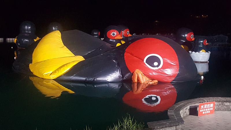 圖:花蓮「紅面鴨FUN暑假活動」暫停表演,並提前於27日晚開始泄氣收鴨 中央社