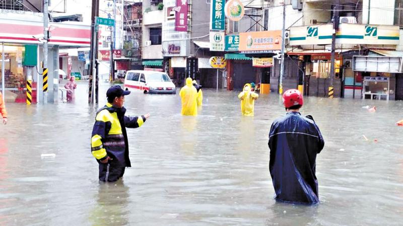 圖:屏東縣林邊一帶淹水嚴重。圖為警察協助民眾撤離 網絡圖片