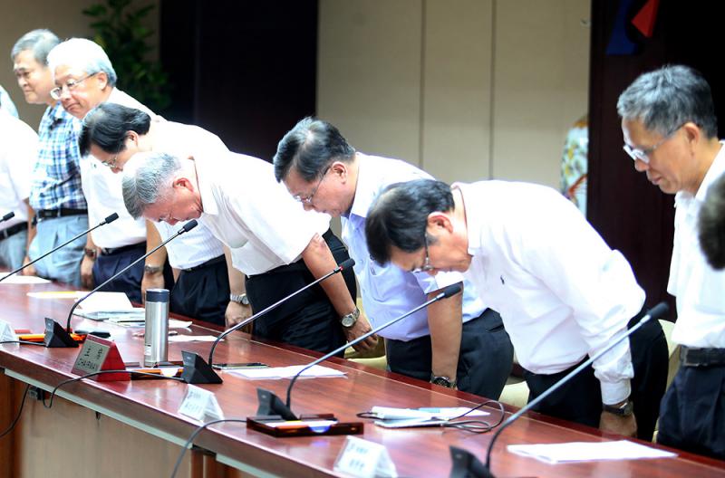 圖:全台15日無預警大停電,「經濟部長」李世光(右三)率領相關人員向社會大眾鞠躬致歉 中央社