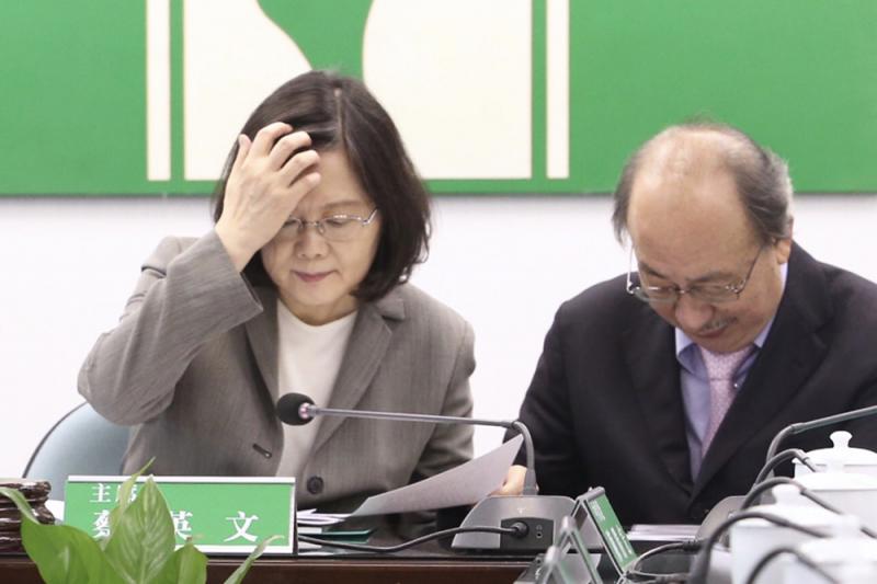圖:對於全台大停電事件,身兼民進黨主席的當局領導人蔡英文(左)16日向公眾道歉。右為民進黨立院黨團總召柯建銘 中央社