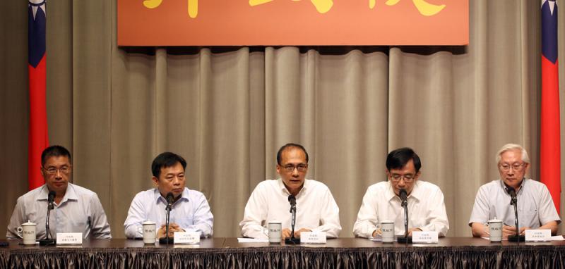 圖:「行政院長」林全(中)16日召開記者會,為全台大停電造成民眾不便,兩度道歉/中央社