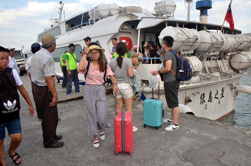 圖:受颱風影響,台東蘭嶼部分遊客20日提前搭船返回台灣本島/中央社