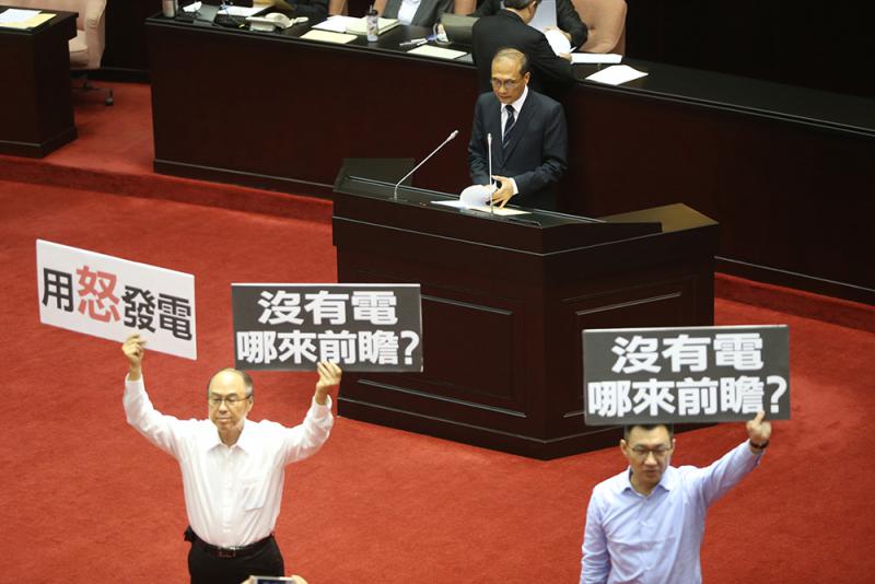 圖:藍委在立院舉牌抗議當局的能源政策 中央社