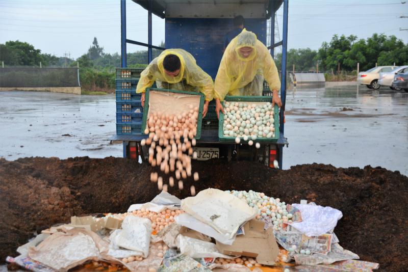 圖:彰化縣23日銷毀含有芬普尼的8000多個雞蛋 中央社