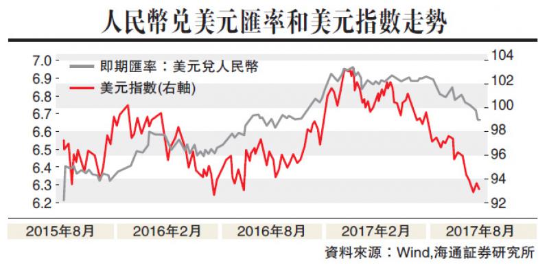 未來匯率如何走?從外部來看,當前美國經濟依然穩定,而且美國二季度經濟增速已經從1.2%回升到了2.6%。七月份美聯儲議息會議聲明指出,年內將很快啟動縮表,縮表對長期收益率的提升作用會更直接。這些都意味着美元指數在上半年「消化」了經濟增長放緩、特朗普預期差調整的負面衝擊後,下半年的下行空間將會有限。